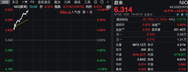 盘初,热门中概股全线冲高,中国金龙指数涨超1.5%。截至发稿,名创优品大涨超15%,蔚来涨近14%,拼多多涨超4%,金山云、阿里巴巴涨超3%,小鹏汽车、禾赛科技涨超2%。